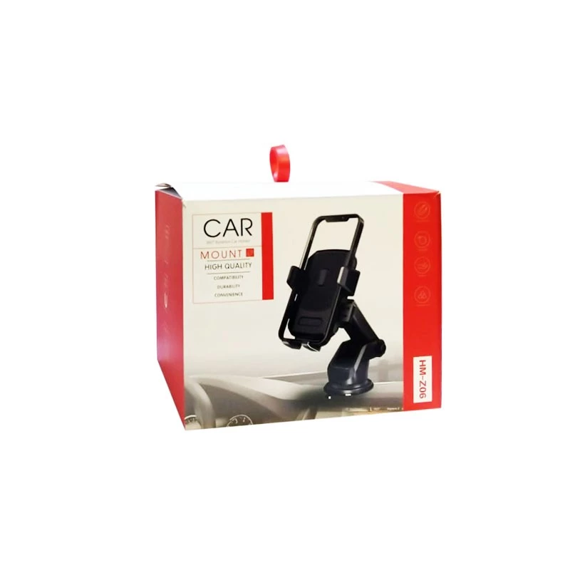 هولدر موبایل car mount hm-z06 از بدنه پلاستیکی زیبا و مقاوم در برابر ضربه ساخته شده است .دارای دو بازوی متحرک و قابل تنظیم است . حداکثر ارتفاع هولدر در بیشترین حالت باز بودن بازوها 22 سانتی متر است . گیره نگهدارنده موبایل و گیره کناری هولدر گوشی را محکم نگه میدارند و قابلیت چرخش 360 درجه را برای موبایل فراهم میکنند .بادکش انتهای هولدر از قدرت چسبندگی بالایی برخوردار است و بر روی سطوحی مانند شیشه خودرو ، میز و داشبورد مناسب میباشد .