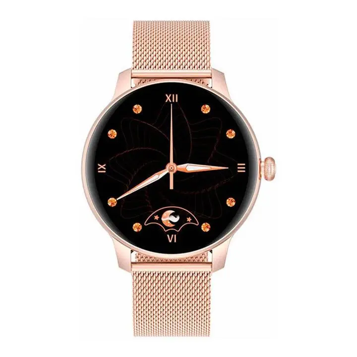 ساعت هوشمند kieslect Lady Watch مدل L11 ساعتی با طراحی و ساخت زیبا و کیفیت بسیار بالا می باشد. این ساعت دارای صفحه ی نمایش لمسی بوده. و شما می توانید تنظیمات مختلف را به راحتی و با حالت تاچ روی این صفحه نمایش انجام دهید. این ساعت دارای بند فلزی می باشد. که بسیار مقاوم هستند و کیفیت بالایی دارند و در بابر انواع ضربه ها، خط و خش ها و فشار ها مقاومت بالایی دارند. نوع صفحه نمایش این ساعت TFT بوده و اندازه ی این صفحه نمایش نیز به 1.09 اینچ می رسد. این ساعت با سیستم عامل اندروید 6.0 به بالا و iOS 11.0 به بالا سازگاری کامل دارد. این ساعت دارای باتری لیتیوم پلیمری با ظرفیت 180 میلی آمپر بر ساعت می باشد. از قابلیت های مهم دیگر این محصول عبارتند از: دارای 8 پروفایل ورزشی مختلف، مقاوم در برابر آب و گرد و غبار با گواهینامه استاندارد IP68، مجهز به سنسورهای پایش ضربان قلب، سنجش اکسیژن خون و حرکت و… می باشد.