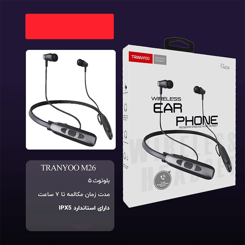 هندزفری بلوتوثی ترانیو مدل T-M26 از برند ترانیو یک انتخاب عالی برای استفاده در مکانهای عمومی و ورزشی است.این هندزفری از تکنولوژی بلوتوث نسخه 5.2 پشتیبانی میکند.بلوتوث 5.2 باعث میشود که ارتباط بیشتر و پایدارتری با دستگاه های متصل شده برقرار شود.همچنین، هندزفری T-M26 دارای قابلیت NOISE CANCELLING است.این قابلیت به شما کمک میکند تا صداهای مزاحم خارجی را کاهش دهید و تمرکز بیشتری بر روی موسیقی یا مکالمههای تلفنی خود داشته باشید.یکی از ویژگیهای برجسته این هندزفری، کلیدهای تنظیم و قطع و پاسخگویی آسان است که به کاربر امکان مدیریت مکالمات و کنترل موزیکها را فراهم میکند.هندزفری گردنی M26 ترانیو دارای قابلیت پشتیبانی از کارت حافظه (Micro SD) میباشد که به کاربر امکان ذخیره و پخش موزیکها بدون نیاز به دستگاه جانبی را میدهد.هندزفری ترانیو M26 همچنین دارای استاندارد IPX5 است.این استاندارد به هندزفری امکان میدهد در برابر قطرات آب و عرق مقاومت کند.بنابراین شما میتوانید در فعالیتهای ورزشی و فضای باز مانند دویدن، دوچرخه سواری و کارهای روزانه خود از آن استفاده کنید.