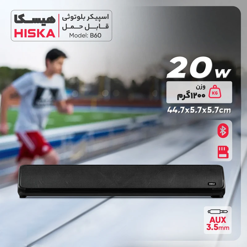 اسپیکر ساندبار هیسکا مدل B60، شاهکاری از طراحی و تکنولوژی است که تجربهای فراتر از صدای معمولی را برای شما به ارمغان میآورد. این اسپیکر بیسیم با بدنهای مقاوم و شیک از مواد ABS، PC و فلز، نهتنها ظاهری مدرن دارد، بلکه کیفیتی استثنایی را نیز ارائه میدهد. ابعاد جمعوجور 447×57×57 میلیمتری این اسپیکر باعث میشود تا بهراحتی در هر فضایی جای گیرد و دکوراسیون شما را تکمیل کند. اما این تنها ظاهر نیست که هیسکا مدل B60 را متمایز میکند. قدرت صدای 20 واتی (10 وات × 2) آن به شما امکان میدهد هر نت موسیقی را با جزئیات بشنوید و از بیس عمیق و صدای واضح آن لذت ببرید. این اسپیکر با فناوری TWS مجهز شده است، به این معنی که میتوانید دو دستگاه B60 را به یکدیگر متصل کرده و یک تجربه صدای استریوی واقعی با کانالهای مجزای چپ و راست ایجاد کنید. چه در حال تماشای فیلم باشید و چه در حال گوش دادن به موسیقی، این قابلیت شما را غرق در تجربه صوتی میکند. هیسکا مدل B60 از انواع اتصالات شامل درگاه USB، AUX و کارت TF پشتیبانی میکند، بنابراین میتوانید موسیقی خود را از هر منبعی بهآسانی پخش کنید.