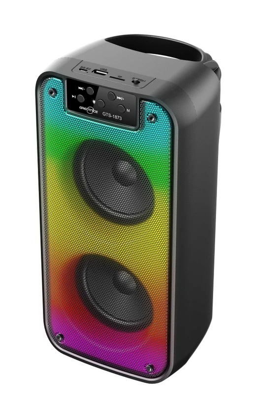 اسپیکر GTS-1873 یک مدل بلوتوثی و قابل حمل است که با دو باند 4 اینچی طراحی شده و به خاطر صدای قدرتمند و کیفیت بالا شناخته میشود. این اسپیکر برای استفاده در مهمانیها و محیطهای باز بسیار مناسب است. دو باند 4 اینچ: این اسپیکر دارای دو باند با اندازه 4 اینچ است که صدای واضح و باس قوی را فراهم میکنند. این باندها قدرت خروجی مناسبی برای پخش موسیقی با کیفیت بالا ارائه میدهند. نورپردازی جذاب: یکی از ویژگیهای متمایز این اسپیکر، نورپردازی LED جذاب آن است که با پخش موسیقی تغییر میکند و تجربهای بصری و هیجانانگیز برای کاربران به همراه دارد. این نورها در رنگها و افکتهای مختلف طراحی شدهاند که به محیط جلوه خاصی میبخشند.