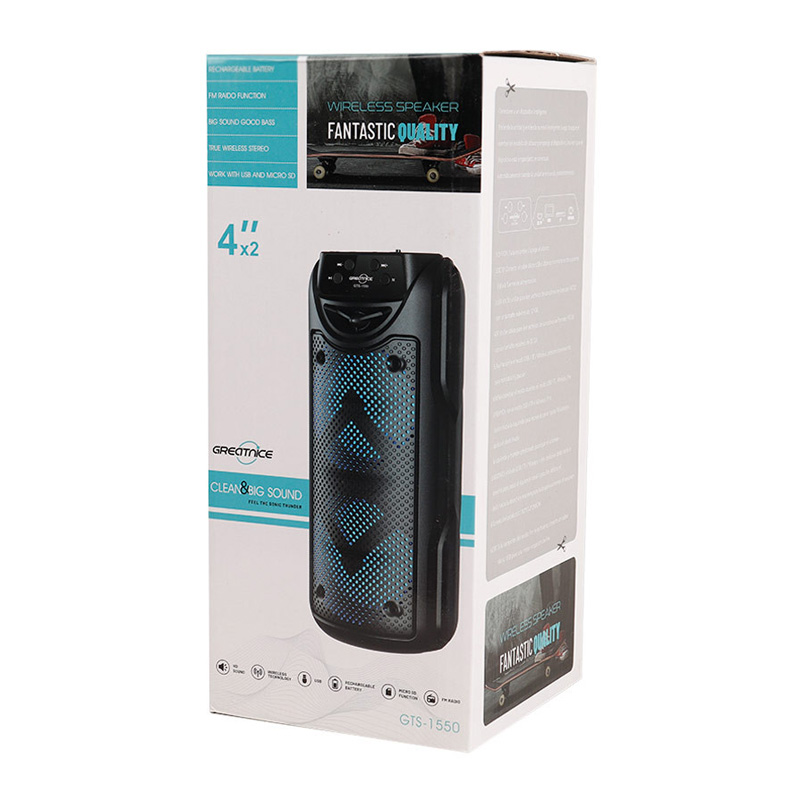 این اسپیکر برای افرادی که به دنبال کیفیت صدای بالا و قابلیت حمل آسان هستند، یک انتخاب مناسب محسوب میشود.این دستگاه دارای 2 عدد اسپیکر داخلی است که به ارائه صدایی استریو و پرقدرت کمک میکند. بازه فرکانس پاسخگویی این اسپیکر 100Hz تا 20KHz است. این بازه فرکانسی، پوشش مناسبی از صداهای بم تا زیر را فراهم میکند و کیفیت صدای خروجی را تضمین میکند.با نسبت سیگنال به نویز 85 دسیبل، این اسپیکر صدایی شفاف و بدون نویز را ارائه میدهد که تجربه شنیداری لذتبخشی را برای کاربران فراهم میکند.برای شارژ کامل باتری اسپیکر به 2 تا 3 ساعت زمان نیاز است. این مدت زمان کوتاه، امکان استفاده مکرر از دستگاه را تسهیل میکند. حداقل برد بلوتوث این دستگاه 10 متر است که به کاربران امکان اتصال بیسیم با فاصله مناسب را میدهد.اسپیکر مدل 1550 میتواند با هر بار شارژ کامل، حدود 1 ساعت موسیقی پخش کند (در میزان ولوم 75%). این ویژگی آن را برای استفاده در مهمانیها و جلسات کوتاه بسیار مناسب میسازد.